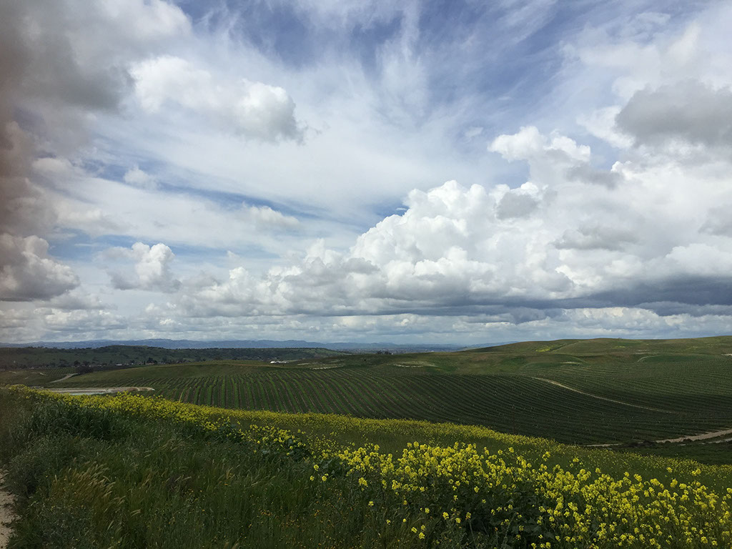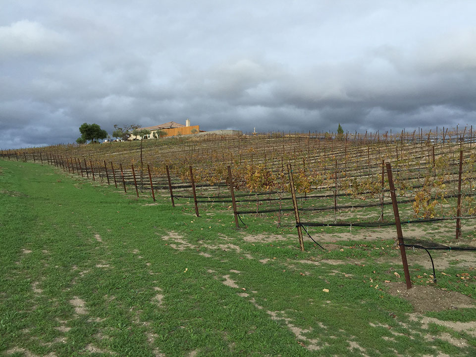 The windy cold winter brings shorter days while the vineyard sleeps...the Gruenhagen skies fill with cottony clouds; the hills go green from the rains; the vines work feverishly beneath the gravelly soil, all longing for Spring...